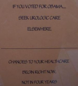 Could this be true? Are doctor’s going to revolt now that Obamacare is here? This sign was discovered on the door of a urology center in Florida.